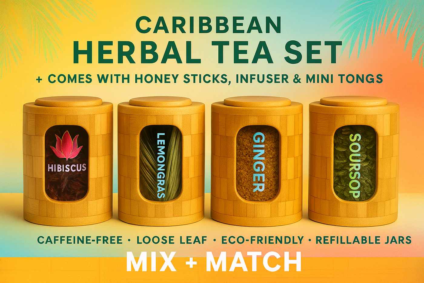 Mix & Match Herbal Loose Leaf Tea Set – Soursop, Lemongrass, Ginger & Hibiscus